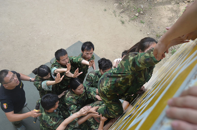 此次拓展主要是以提高員工的綜合素質(zhì)、團隊意識,促進(jìn)員工的成長(cháng)為目的。為了使拓展收到切實(shí)效果,讓每個(gè)參加活動(dòng)的員工都能在活動(dòng)中充分體驗和感受活動(dòng)內容凸顯出來(lái)的團隊精神,在活動(dòng)開(kāi)始時(shí),教練將員工分成了2個(gè)隊,每個(gè)隊在隊長(cháng)、隊秘的帶領(lǐng)下確定了自己的隊名、口號、隊歌、隊旗等。在拓展過(guò)程中2個(gè)隊按照項目要求,堅持不拋棄不放棄的團隊精神,互幫互助,將每個(gè)人的智慧、力量融入到團隊中,在大家的共同努力下出色的完成了信任背摔、空中斷橋、真人CS、茫茫人海、勝利墻等一項項艱巨而富有挑戰性的項目。